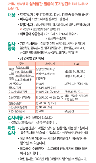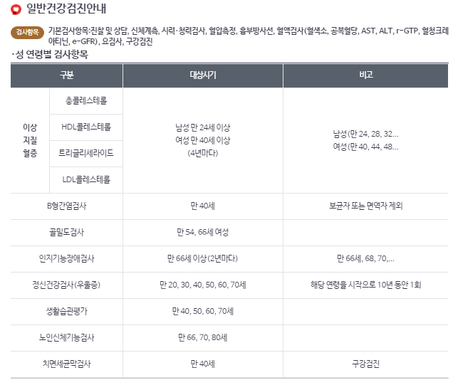 * 만자 만 24세 이상, 여자 만 40세 이상, 4년 주기