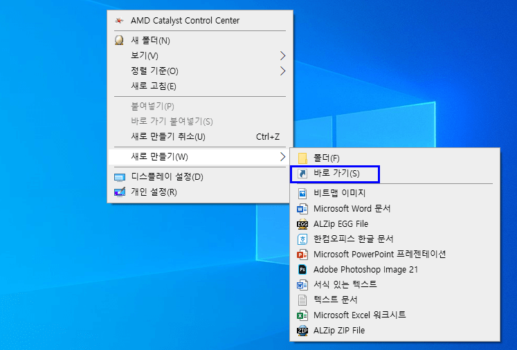 바탕화면 바로가기 만들기