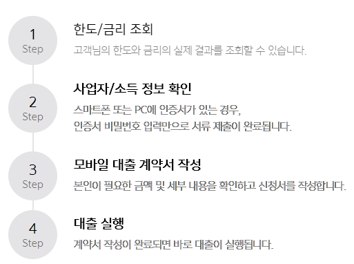 2. 조회된 한도 및 금리로 대출을 진행하고자 한다면 사업자 정보 및 소득정보를 입력 후 공인인증서로 로그인합니다.