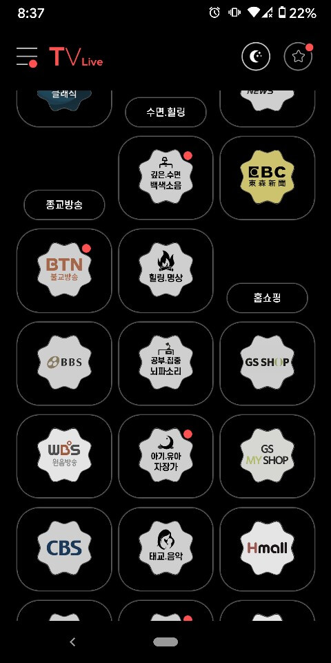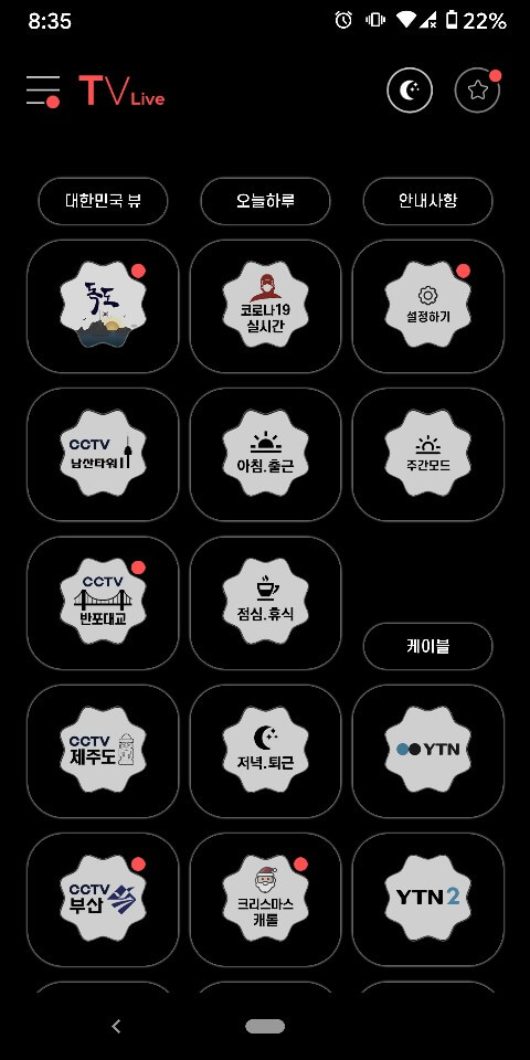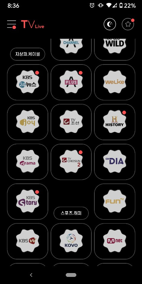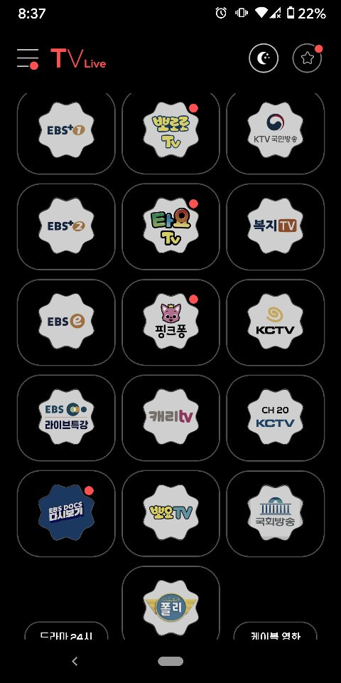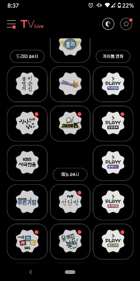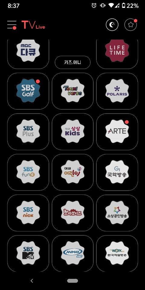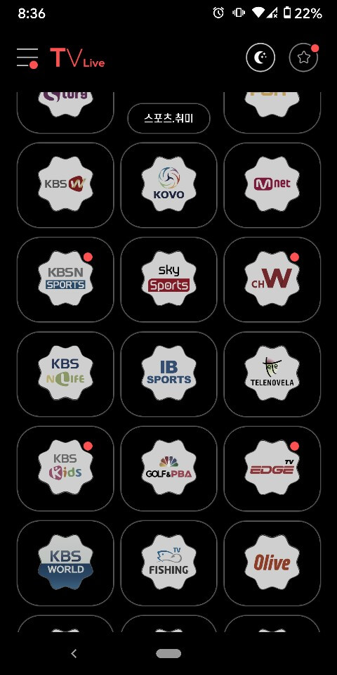 실시간 지역 cctv, 스포츠, 게임, 바둑, 낚시, 드라마, 다큐, 영화, 예능, 어학. 키즈, 음악, 주식 등 경제 방송까지 정말 없는 게 없는 거 같습니다.